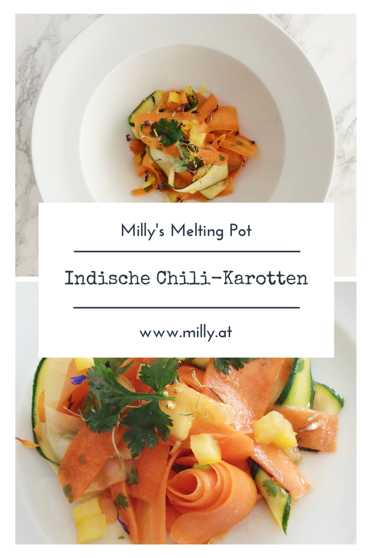 Wenn es über 30°C draußen sind, dann hat man nicht viel Lust auf Deftiges! Einen frischen Salat, mit wundervoll frischen Zutaten ist dann das Richtige. Dieser indische Chili-Karotten Salat ist seit meiner Kindheit regelmäßig auf meinem Speiseplan, und ich finde ihn sehr belebend! Die Frische der Karotten und das Feuer der Chilis bringen den Kreislauf in dieser Hitze wieder in Schwung. Als wir Familienfeste hatten, hat meine Mutter oft ein ganz tolles indisches Essen zubereitet und dieser Salat war eine willkommene ABwechslung zu den herzhaften Currys!